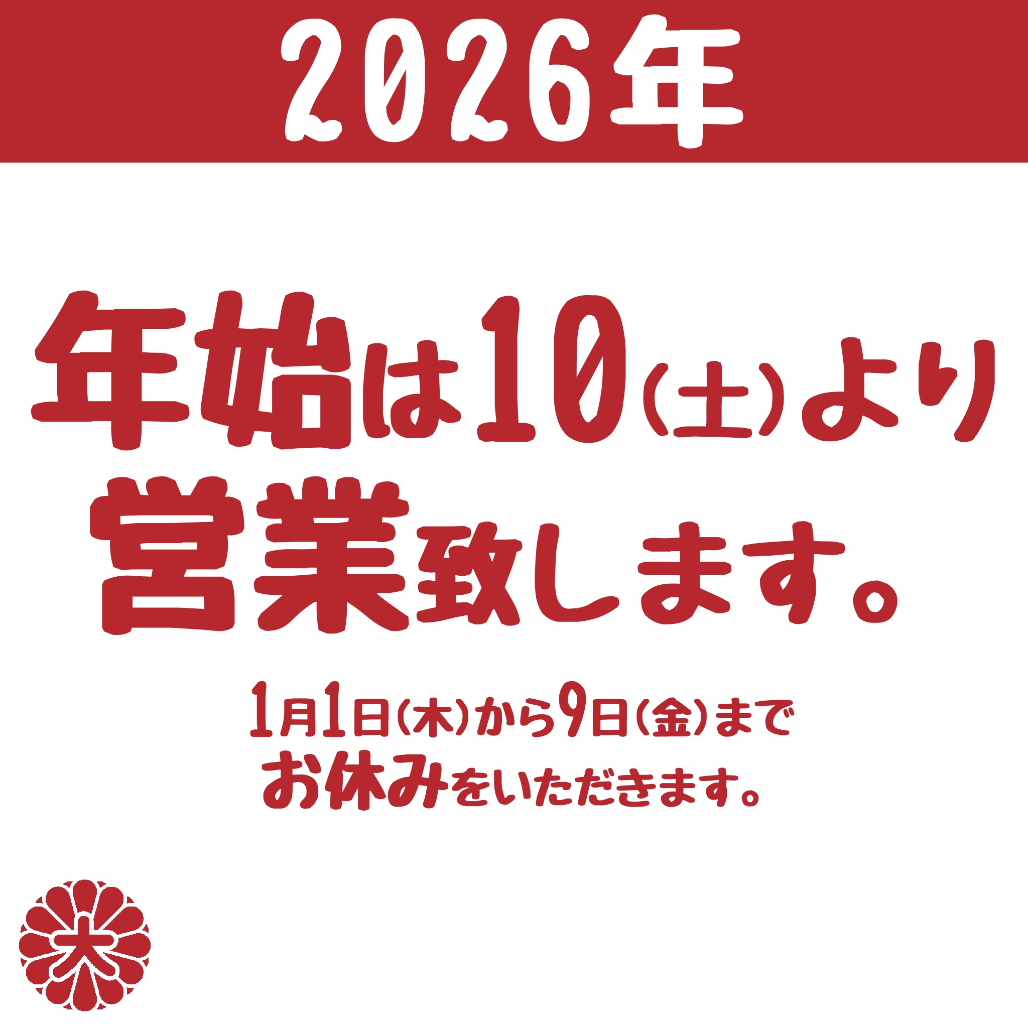 - 2022/12/01 <年末年始営業のお知らせ 2022-2023>