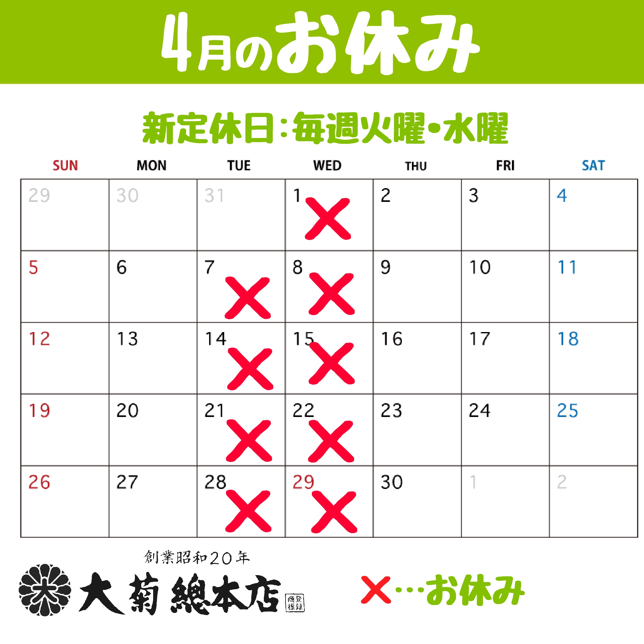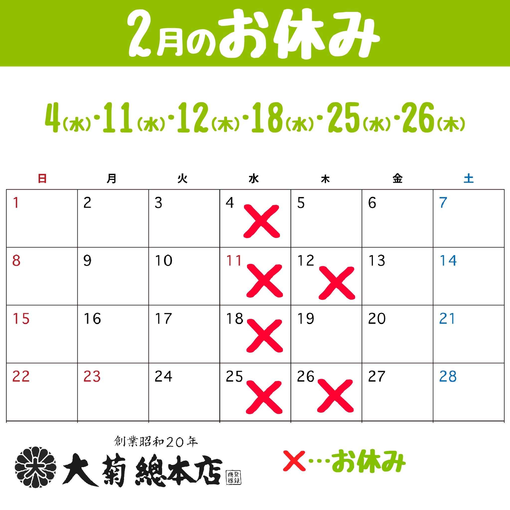 - 2024/02/05 〈営業時間変更のお知らせ〉